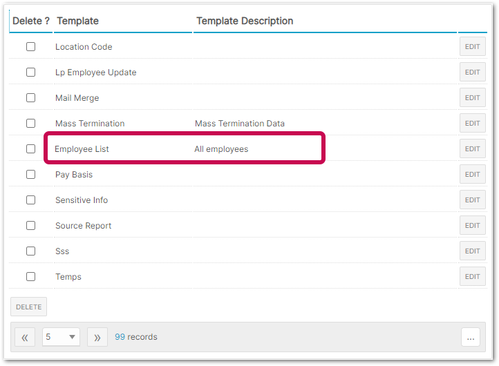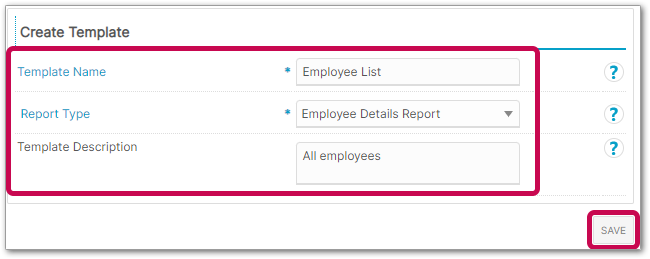 - When all required fields have been selected, return to the Reports Template screen and select the newly created Template