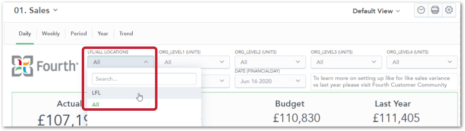 For more information on 'Like for Like' reporting please visit Fourth Analytics WFM UK: Like for Like Functionality.