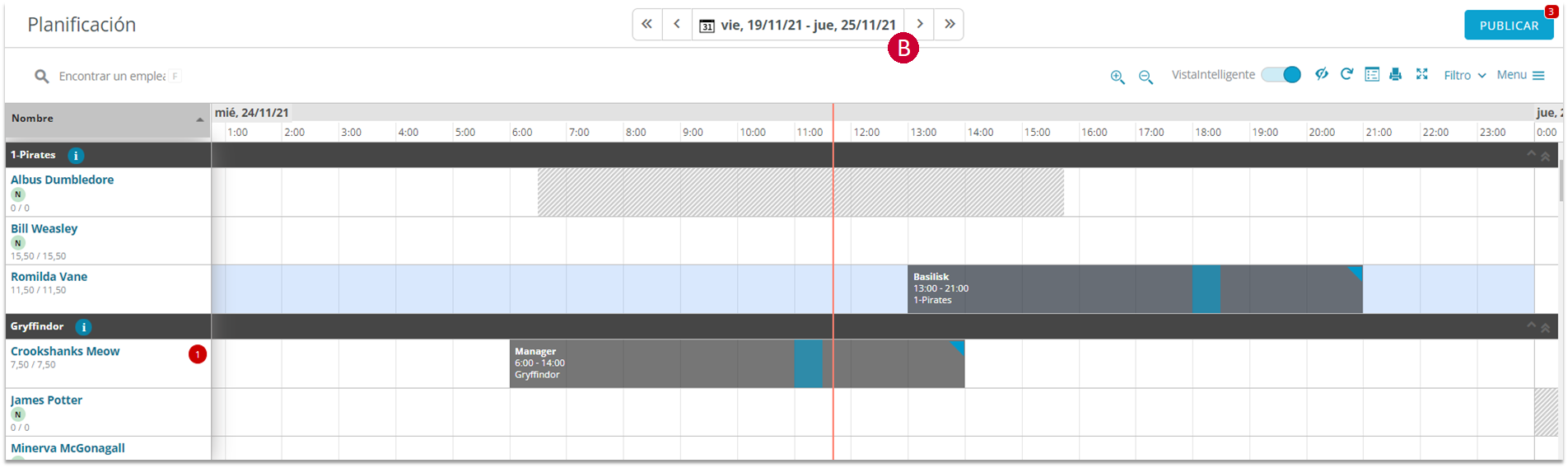 En el Programador, se puede crear y publicar los horarios de cada semana.