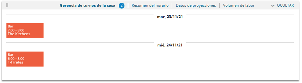 Esto muestra todos los Turnos de Casa o turnos no asignados. Los Turnos de Casa se determinan, la mayoría de tiempo, mediante la predicción de las necesidades de personal de la semana. Puede asignar fácilmente los Turnos de Casa seleccionando el turno de casa y utilizando la herramienta de Selección Inteligente.