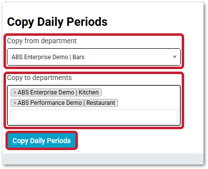 Fig.4 – Copying a Daily Period to multiple Departments