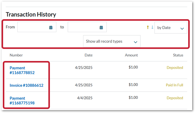 - Transaction History - view and investigate the transactions on your accounts, such as payments, invoices, and credit memos - see Fig.7