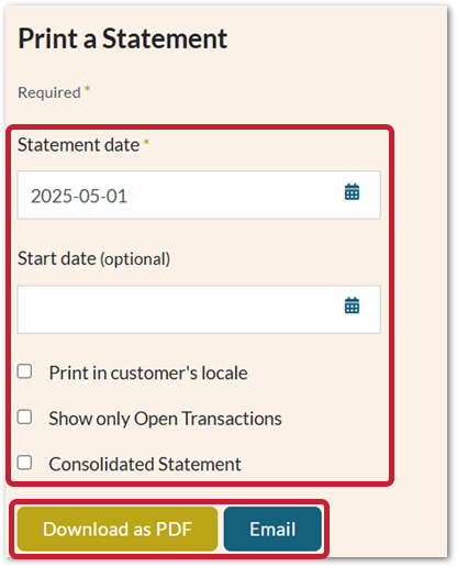 Fig.13 - Print a Statement options, download or email