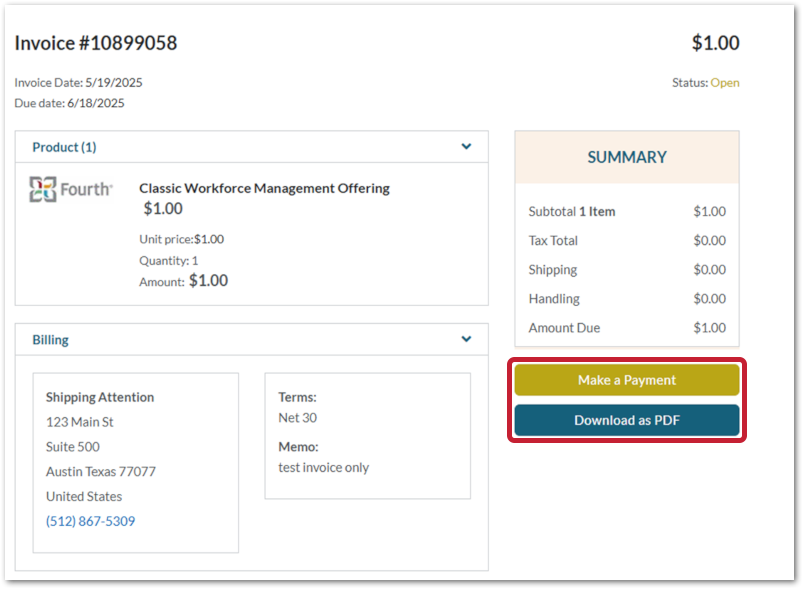 Fig.6 - Payment/download options when viewing an invoice