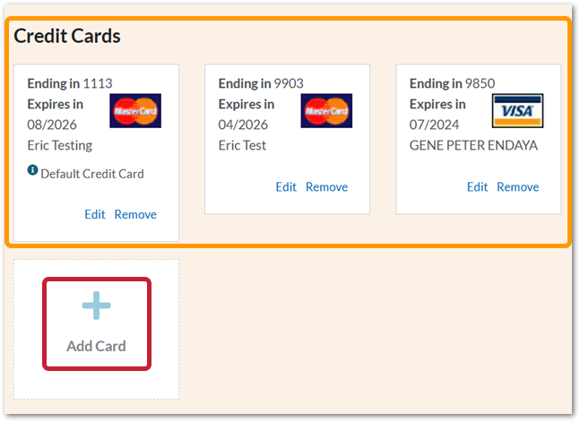 Fig.10 - Existing credit cards, 'Add Card' option