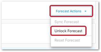 - To unlock the forecast, use the Forecast Actions drop-down and select Unlock Forecast