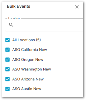 The Bulk Events page allows for authorized above-store users, e.g. regional or at Head Office, to easily make the same adjustments to the forecast for multiple locations.