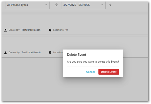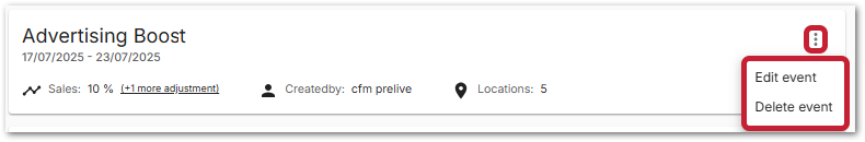 For events that have been created through the 'Add Event' flow, these can be edited or deleted, provided they have not yet started.