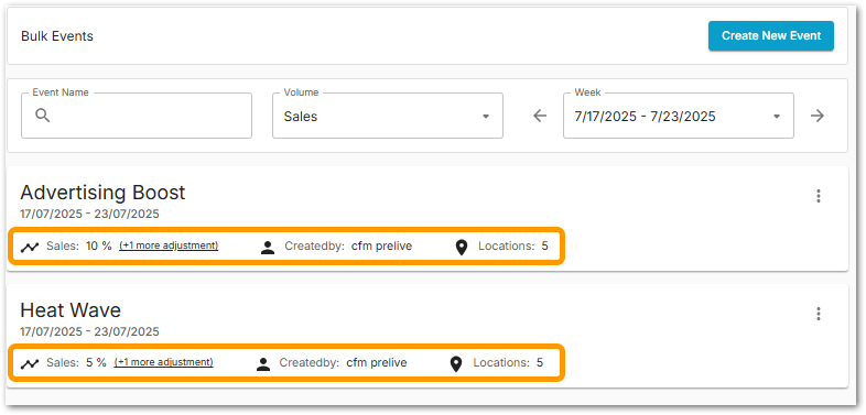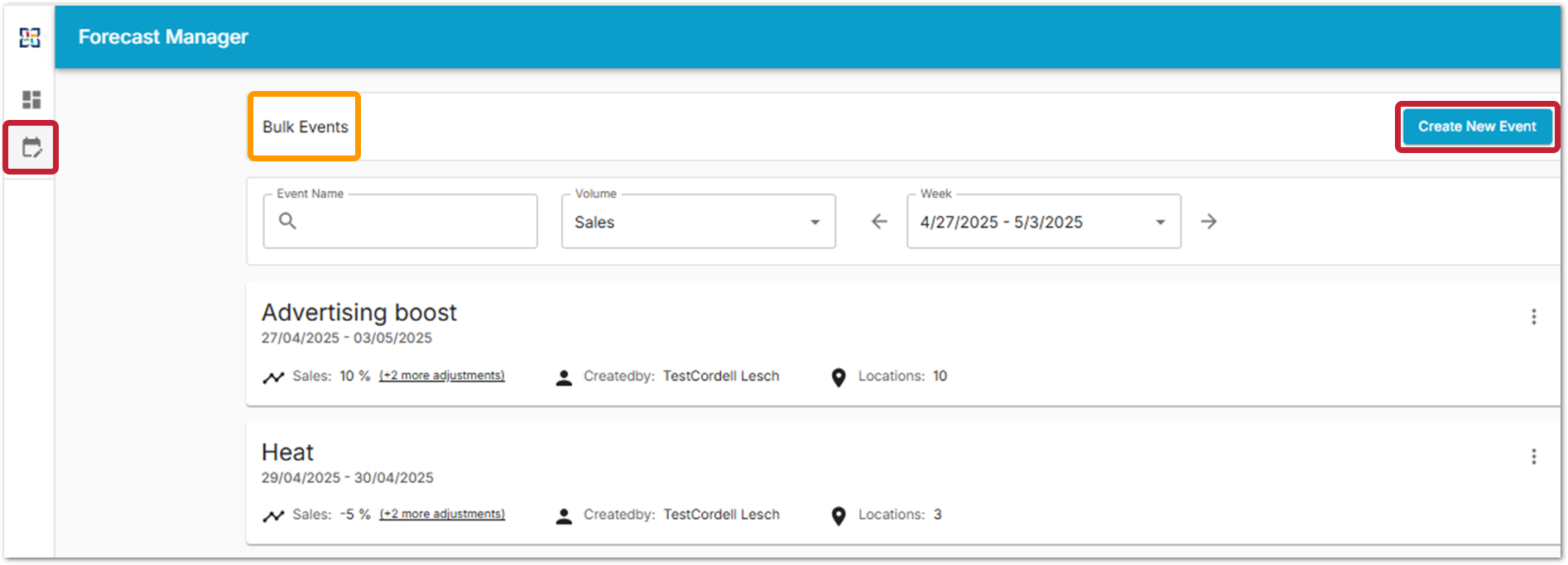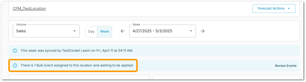 Once a new bulk event has been created, a visual prompt will alert location-level managers that there is a new bulk event that they need to review and apply to their location’s forecast - see Fig.4.