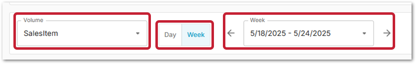- Select either SalesItem or Menu Items from the Volume filter drop-down