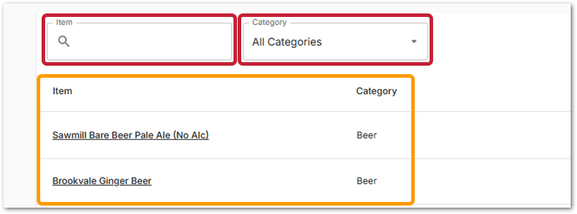 - To start a search, enter at least three characters in the Item text search field
