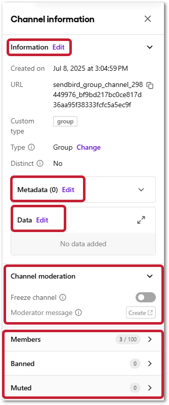 - Edit to update channel information - the channel name, cover photo, and custom type