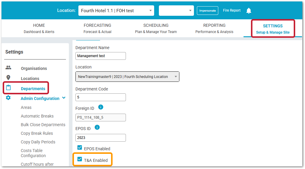 - Go to Settings > Departments > Edit Department > T&A Enabled (see Fig.2)