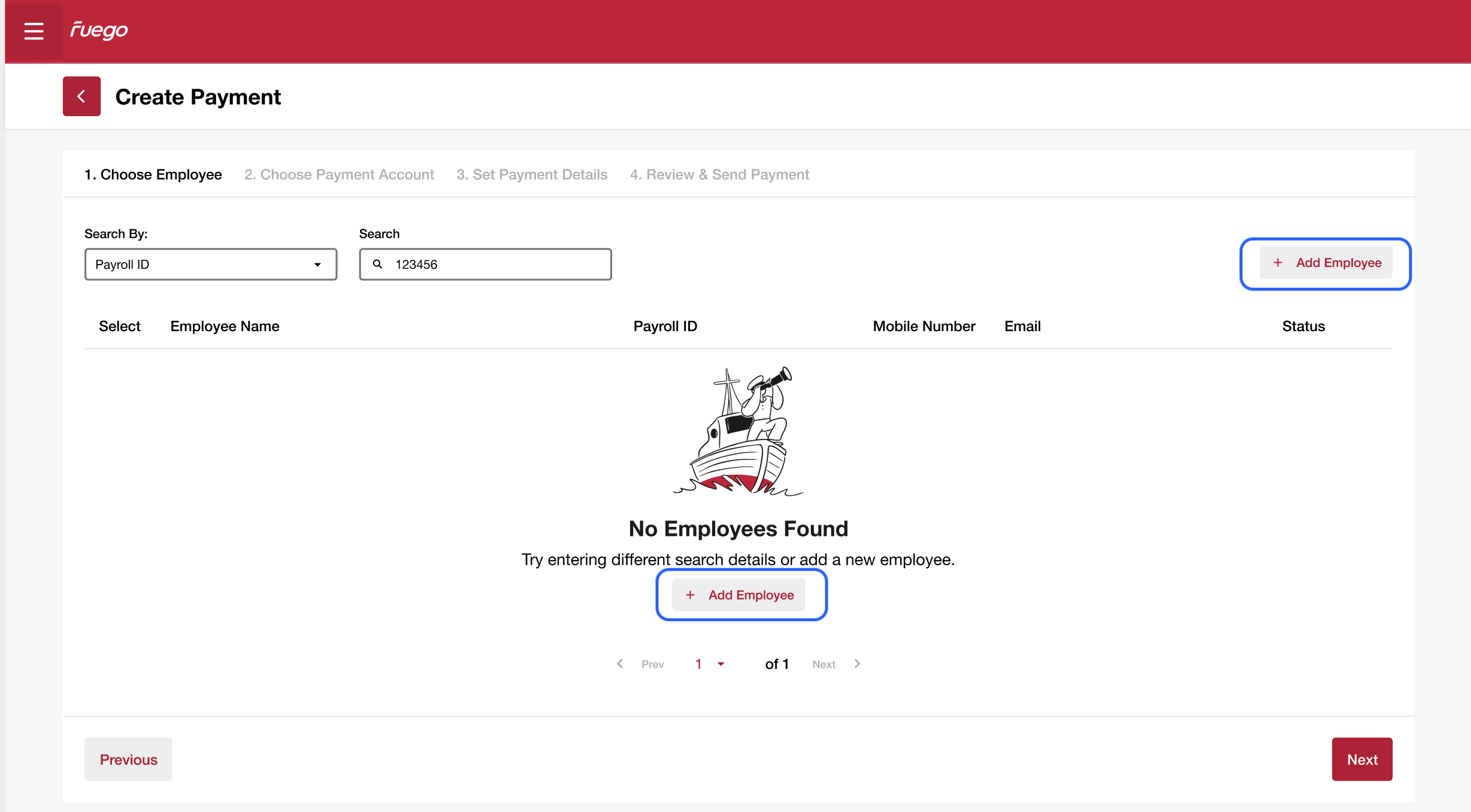 Newly created employment will be visible in the pre-loaded employee records next time a payment is initiated