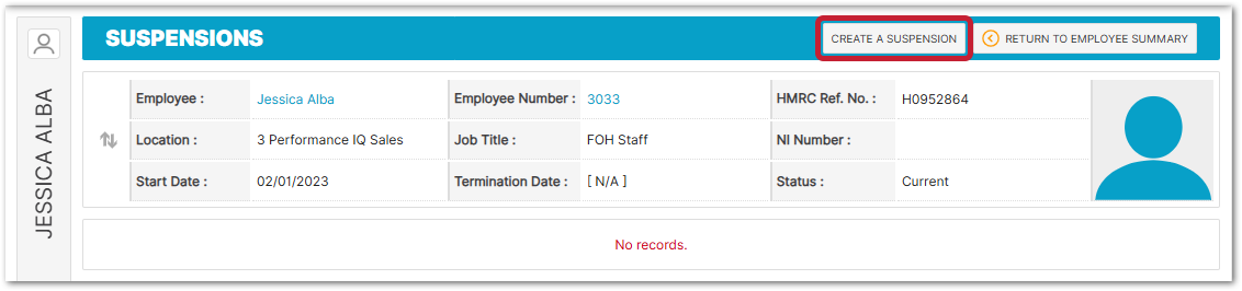 An alternative way of handling an employee's suspension is to use the 'Absences' functionality - details can be found at the end of the article.