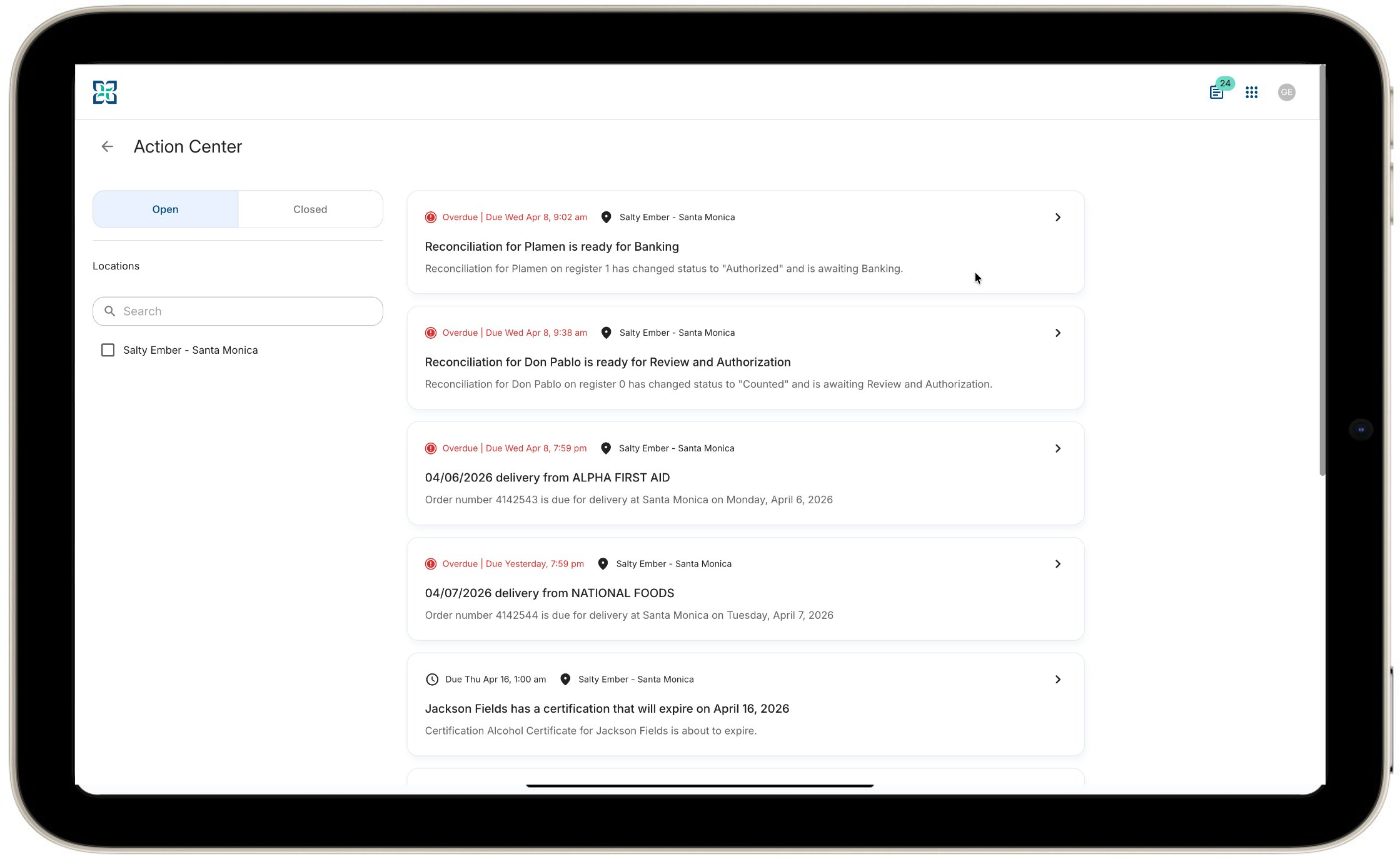 - Tap the clipboard icon to open the Action Center and review all pending tasks