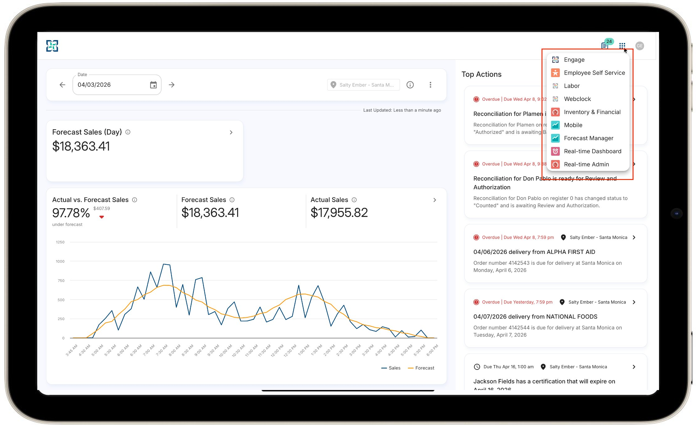 - Other Fourth Products - Tap the grid icon in the top-right corner to access all of your authorized Fourth products, including Engage, Employee Self Service, Labor, Webclock, Inventory & Financial, Forecast Manager, and more. Single sign-on means you're automatically authenticated when you switch.