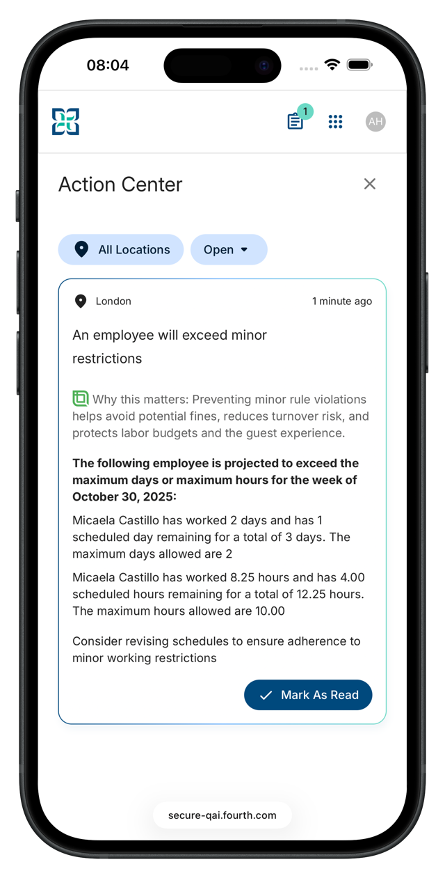 đź§ Fourth iQ: Alerts & Actions Guide for Managers using HotSchedules