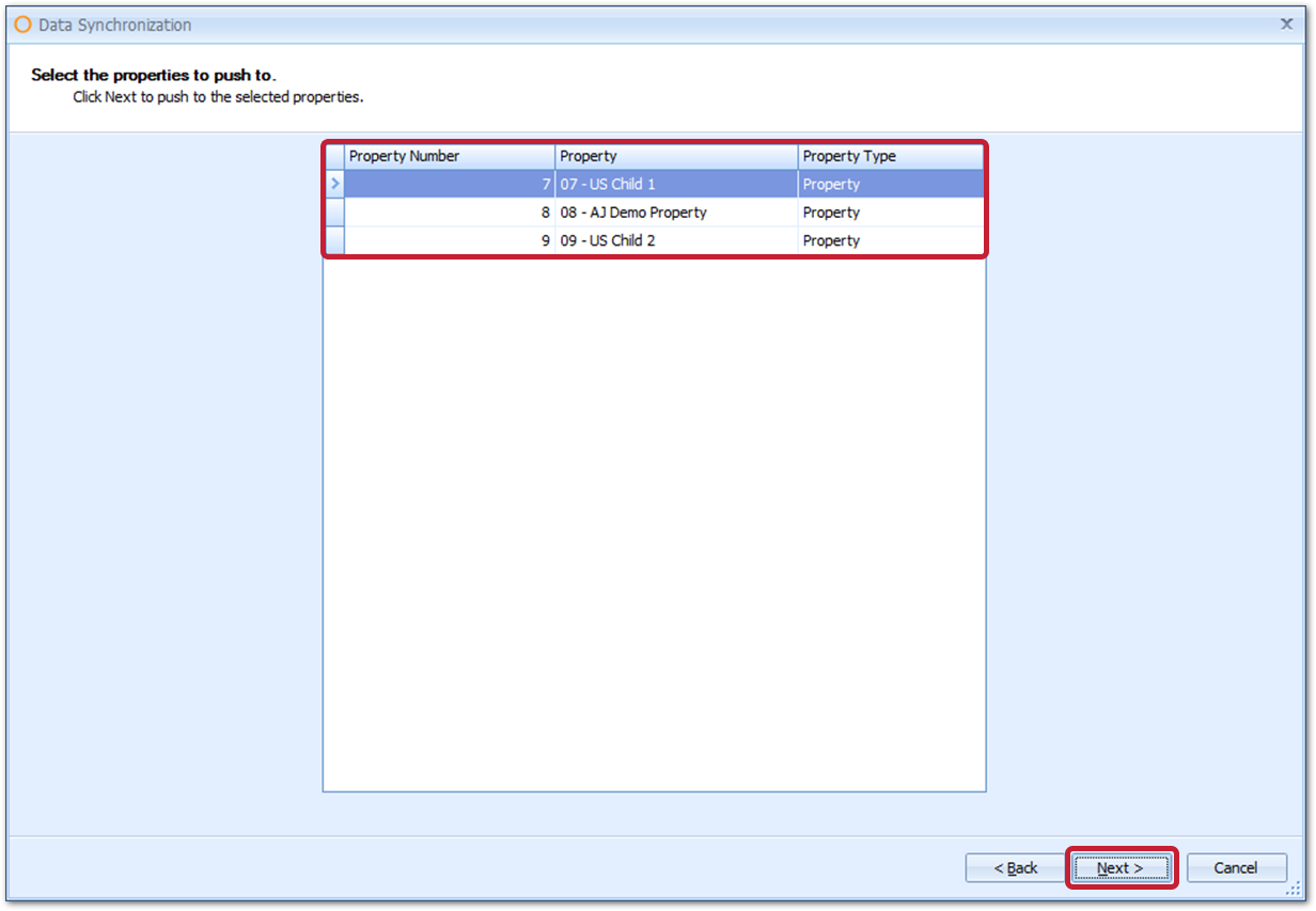 - Use the SHFT key to select multiple properties or highlight a single property to push the product to