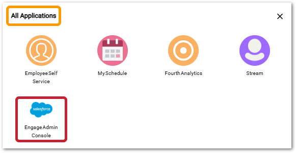 - Users with access can select Engage Admin Console, listed under 'All Applications' in the Fourth Platform (see Fig.1)