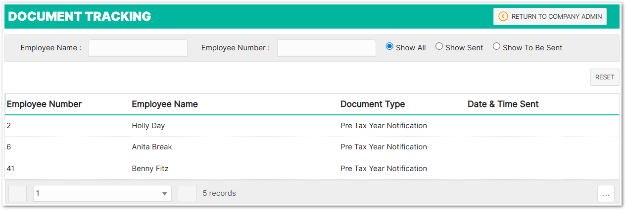 Available under each company, a central 'Document Tracking' area allows employers to see what has been sent, to whom, and when. It also highlights documents due to be sent. Currently, this functionality applies to the Pre-Tax Year Notification, but it provides a foundation for tracking future communications. Documents can be reviewed directly from this area for full transparency.