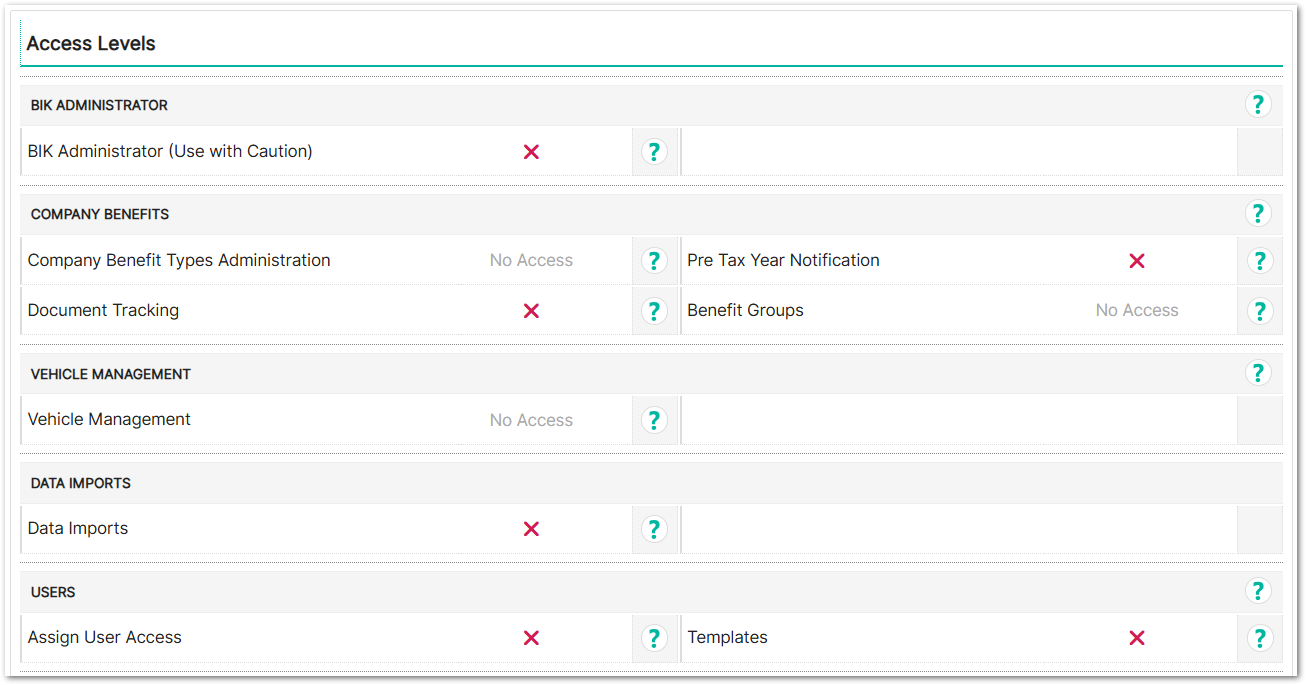 All existing system permissions, access roles and the portal hierarchy remain in force. The BIK module builds on that framework rather than replacing it. Users will only see or act on BIK features if their core role gives them access to the relevant employees or organisational units. This prevents cross-company visibility, avoids accidental access to restricted records, and ensures BIK permissions sit cleanly inside your established governance model.