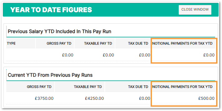 The second amount represents the notional Benefit in Kind value calculated and applied as part of the ongoing payroll processing for the remainder of the tax year (via Fourth Payroll)