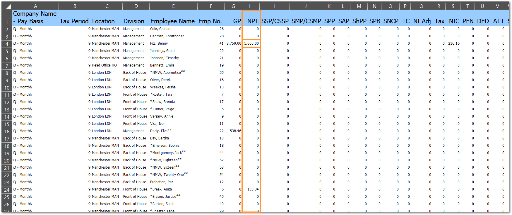The first amount represents any notional Benefit in Kind value applied as part of a mid-tax-year implementation or application (not calculated within Fourth payroll)