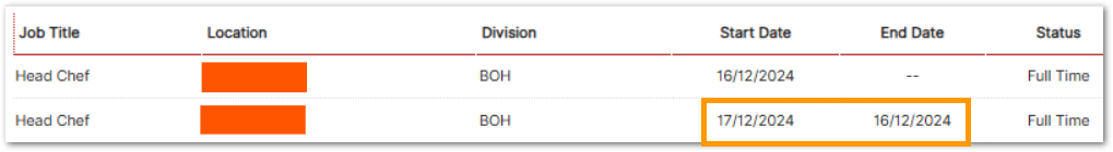 Problem: Employee's career history shows incorrect dates/overlapping dates