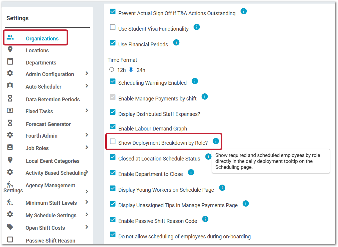 The daily deployment breakdown tooltip on the Scheduling tab can now show breakdowns of required and scheduled employees by role, and sales types based on their sales type groups. This will give a more aggregated view of this information, and still allows users to drill down to a lower level of granularity if requiredSales Types information applies to all Revenue-Based Scheduling customers who use Scheduling.