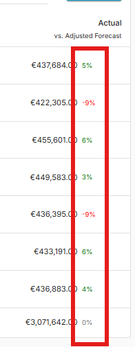 With the impending deployment of the Forecast Summary Page we are moving towards a more aligned forecast performance calculations across pages and products. As a result we will be changing the Actual vs Forecast comparison formula (fig.1) on the forecast page to use: (Actual - Forecast) / Actual.