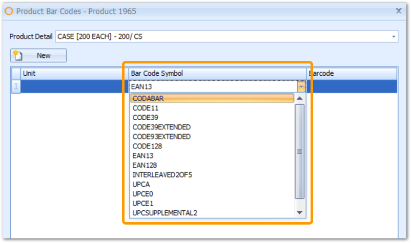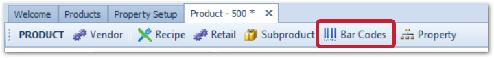 The PDF file below ('Barcode description file') contains a list of acceptable barcode types that can be used in the Adaco platform. This list also includes examples of each barcode type (see Fig.2) that can be associated with the product master when selecting the Bar Codes button (see Fig.1).