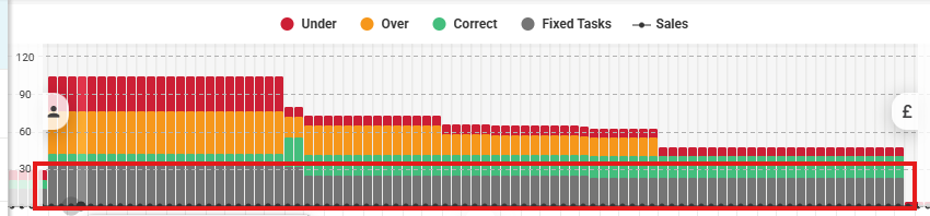 - When enabled, minimum staffing levels are displayed as a distinct visual layer alongside the fixed tasks requirements Fig.1