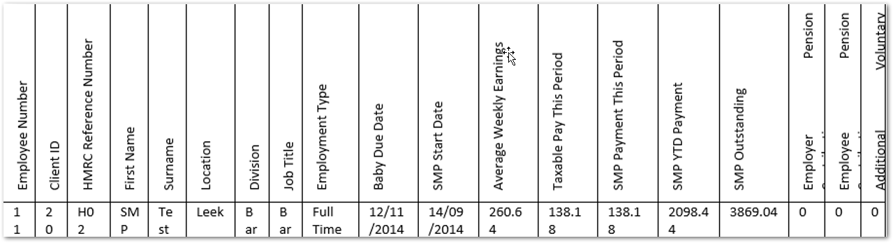 The export displays how much SMP has been paid in the selected Pay Basis/Run and how much is still outstanding. Pension contributions are also displayed.