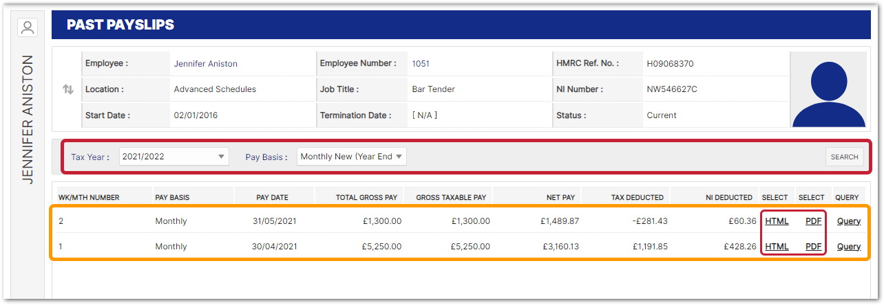 - To see a duplicate of the payslip (in a format for printing), select PDF