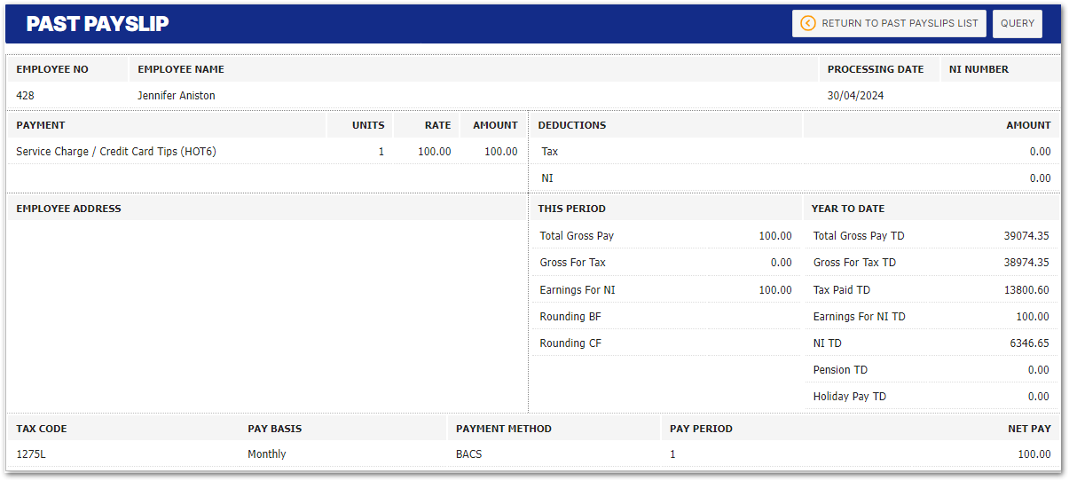 The top section of the payslip gives a breakdown of the wages and at which locations the employee has worked.