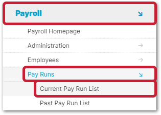- Using the side menu, go to Payroll > Pay Runs > Current Pay Run List