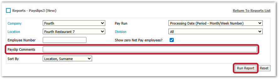 Fig.5 - Payslips3 (New) report, 'Payslip Comments' field