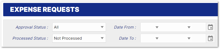 All records of expense claims are recorded on the system. To search for previous claims, use the search criteria at the top of the list in My Expenses.