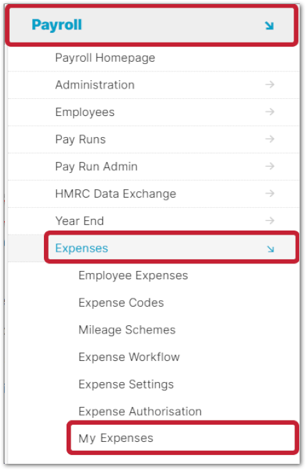 - Using the side menu, go to Payroll > Expenses > My Expenses