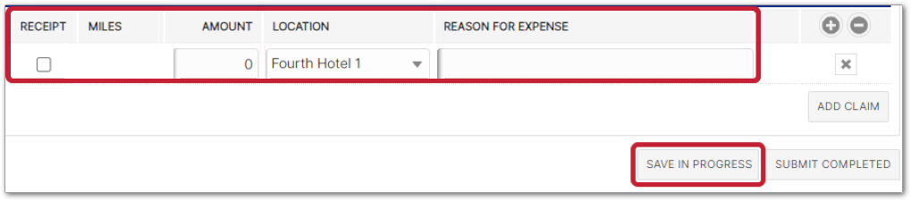 - Selecting Add Claim will also add an expense line