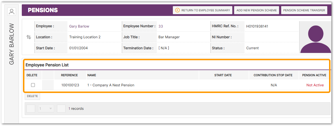 - Go to Pension > Employees > Employee List > search for and select the required Employee