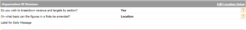 - When budgeting by location, there are two options for Wage Target % templates. There is a Global Setting, Use wage target for location in Rota. When this is set to Yes, a single Wage Target % can be loaded for any Division and it will show for the Location. It won’t be possible to drill down by Division on this. If the setting is set to No, Wage Target % per Divisions can be loaded