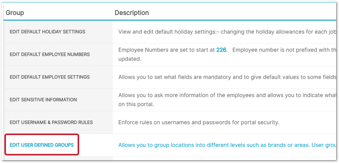 - Select Edit User Defined Groups