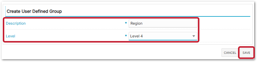 - Enter how many groups are set up and the varying Levels within them in the Level drop-down menu, e.g. Region may be Level 1, Area - Level 2, and County - Level 3