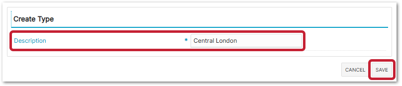 - Enter a Description for the Type and select Save