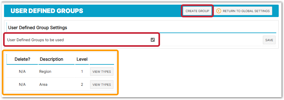User Defined Groups can then be set against Locations.