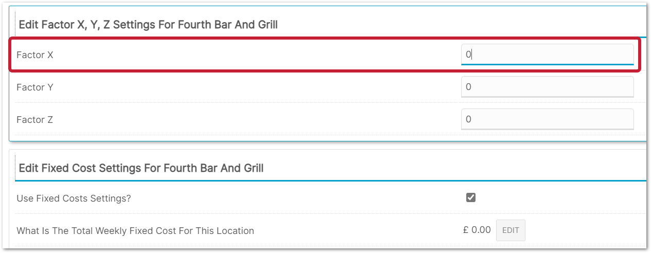 - Select Edit Factor X and Fixed Costs
