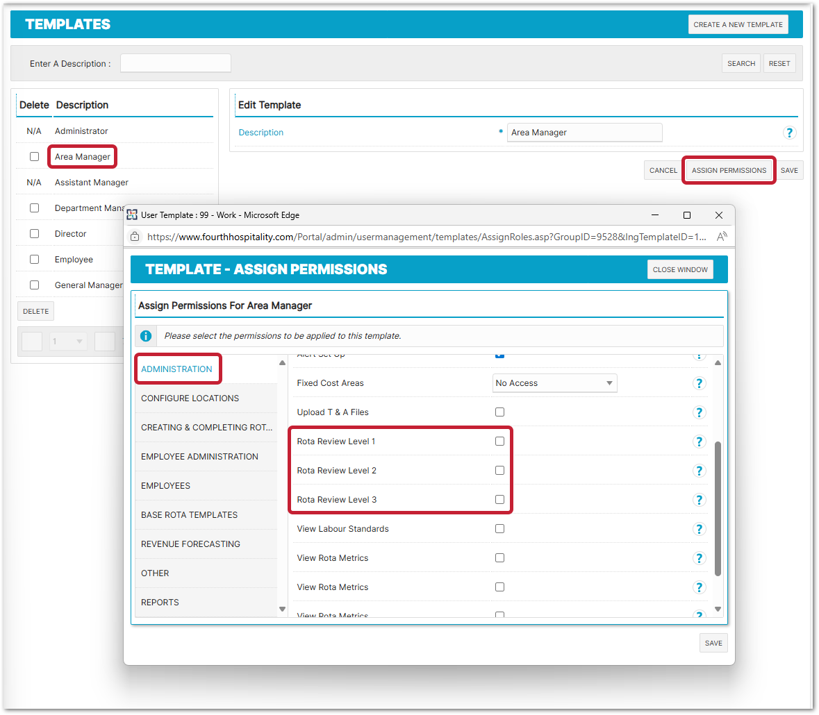 In the permissions templates in the rota module, there will be three Rota Review Levels
