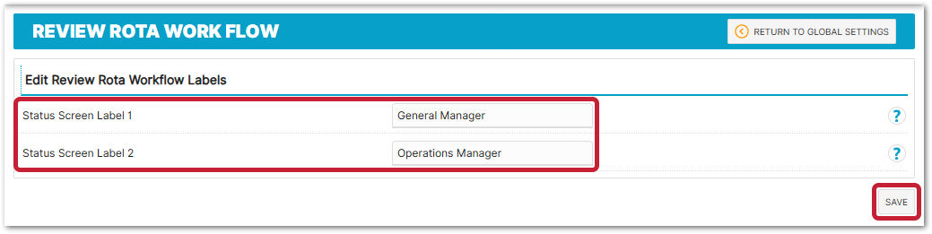 Fig.4 - Global Settings, Review Rota Work Flow Labels
